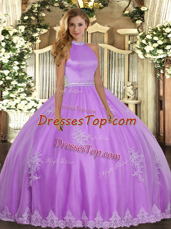 Eye-catching Sleeveless Backless Floor Length Beading and Appliques Ball Gown Prom Dress