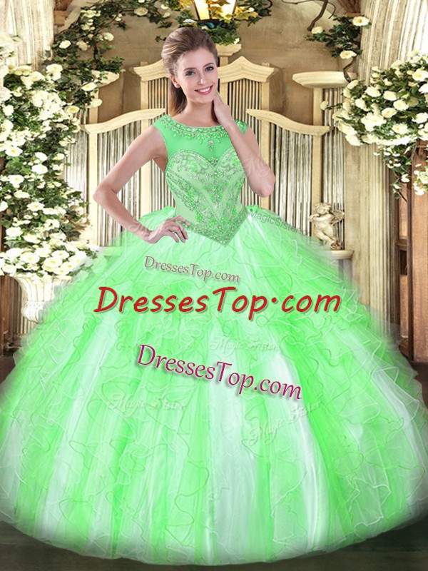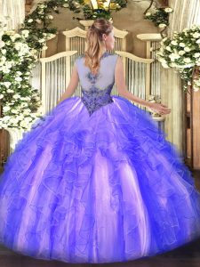 Eye-catching Sleeveless Floor Length Beading and Ruffles Lace Up 15 Quinceanera Dress with