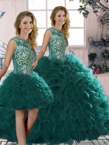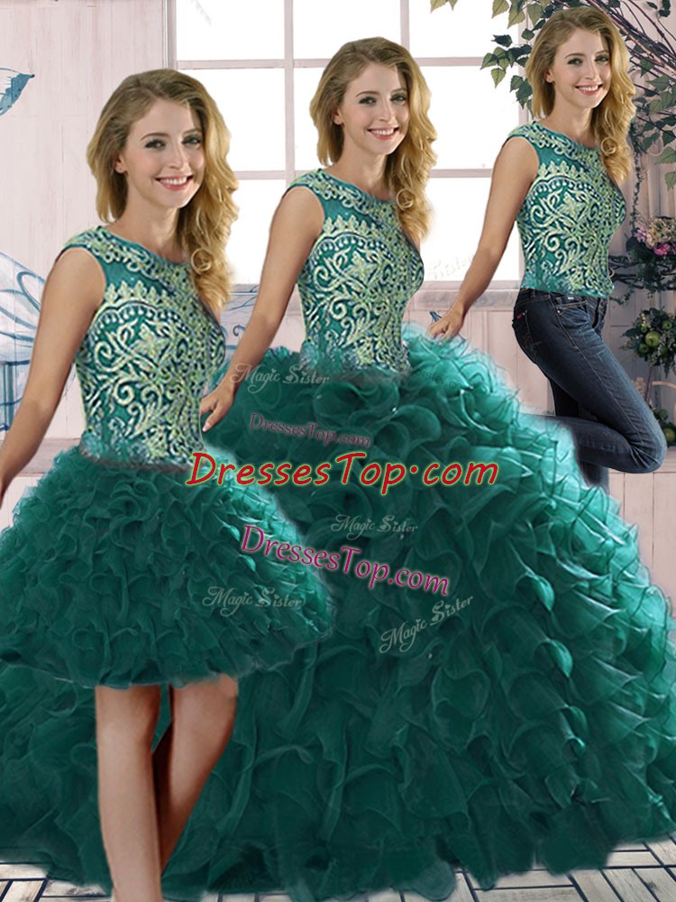 Eye-catching Sleeveless Lace Up Floor Length Beading and Ruffles Sweet 16 Quinceanera Dress