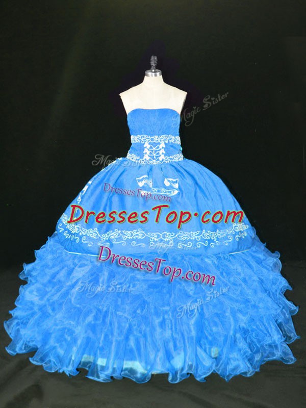 Eye-catching Sleeveless Lace Up Floor Length Embroidery and Ruffles Sweet 16 Quinceanera Dress