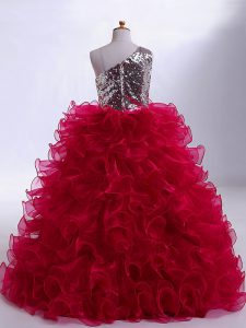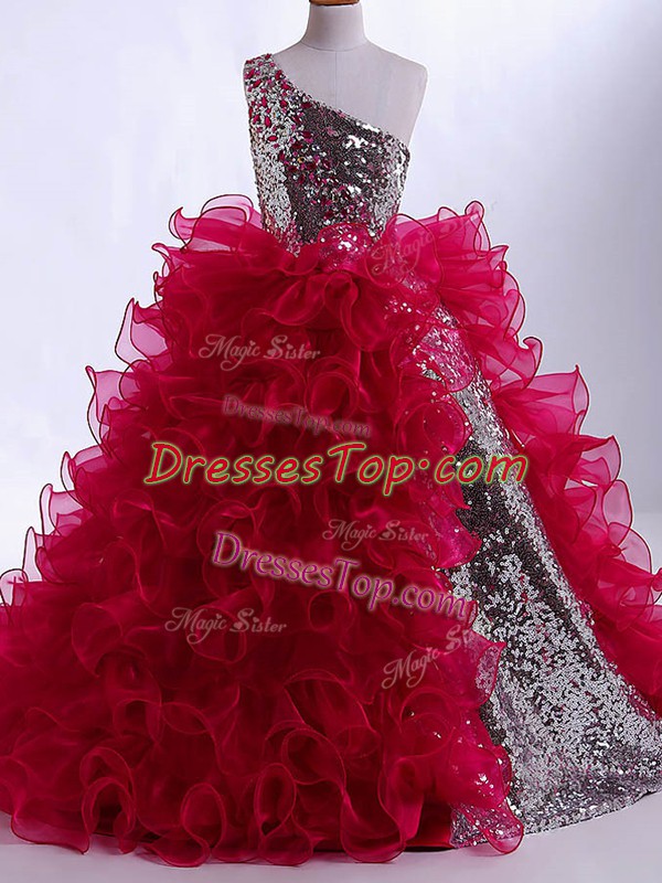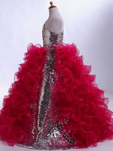 Eye-catching Sleeveless Zipper Floor Length Ruffles and Sequins Girls Pageant Dresses