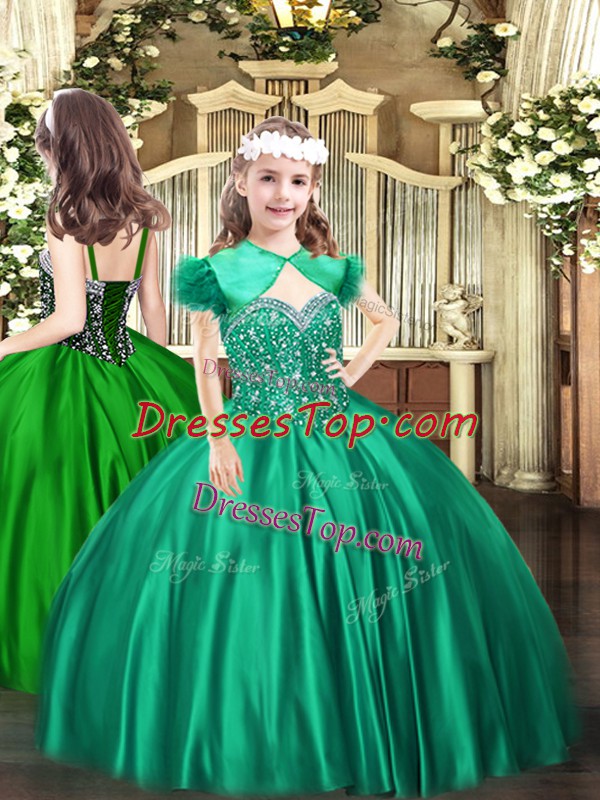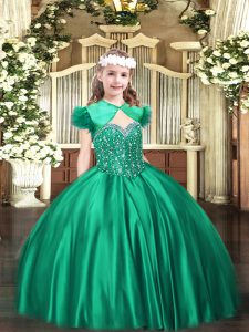 Eye-catching Turquoise Ball Gowns Beading Pageant Dress for Womens Lace Up Satin Sleeveless Floor Length