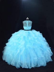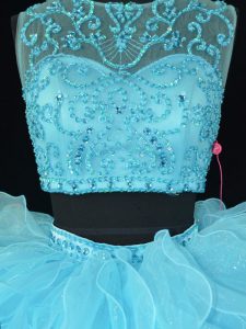 Fabulous Aqua Blue Zipper Quince Ball Gowns Beading and Ruffles Sleeveless Floor Length