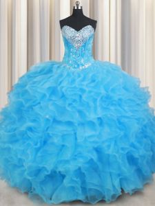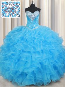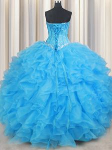 Fabulous Baby Blue Lace Up Quince Ball Gowns Beading and Ruffled Layers Sleeveless Floor Length