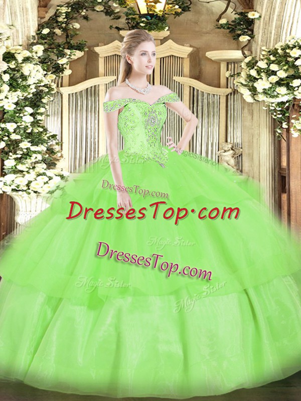 Fabulous Ball Gowns Organza Off The Shoulder Sleeveless Beading and Ruffled Layers Floor Length Lace Up Quinceanera Dress
