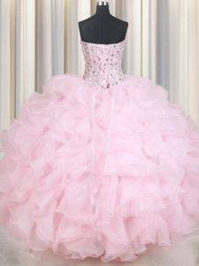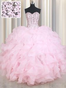Fabulous Beading and Ruffles and Pick Ups Sweet 16 Dresses Blue Lace Up Sleeveless Floor Length