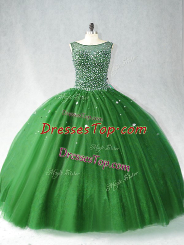 Fabulous Dark Green Sleeveless Tulle Brush Train Zipper 15 Quinceanera Dress for Sweet 16 and Quinceanera