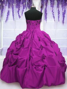 Fabulous Fuchsia Taffeta Lace Up Sweet 16 Dresses Sleeveless Floor Length Embroidery and Pick Ups