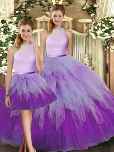 Fabulous High-neck Sleeveless Sweet 16 Dresses Floor Length Ruffles Multi-color Organza