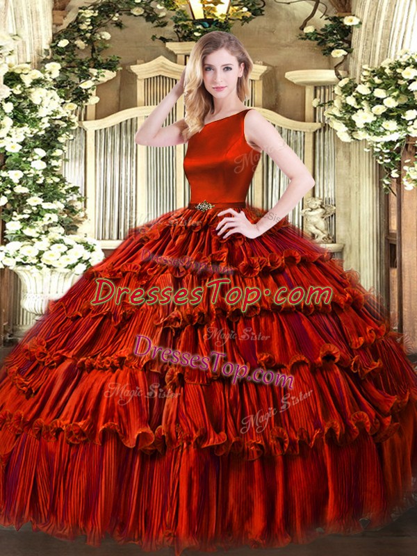 Fabulous Ruffled Layers Vestidos de Quinceanera Wine Red Clasp Handle Sleeveless Floor Length