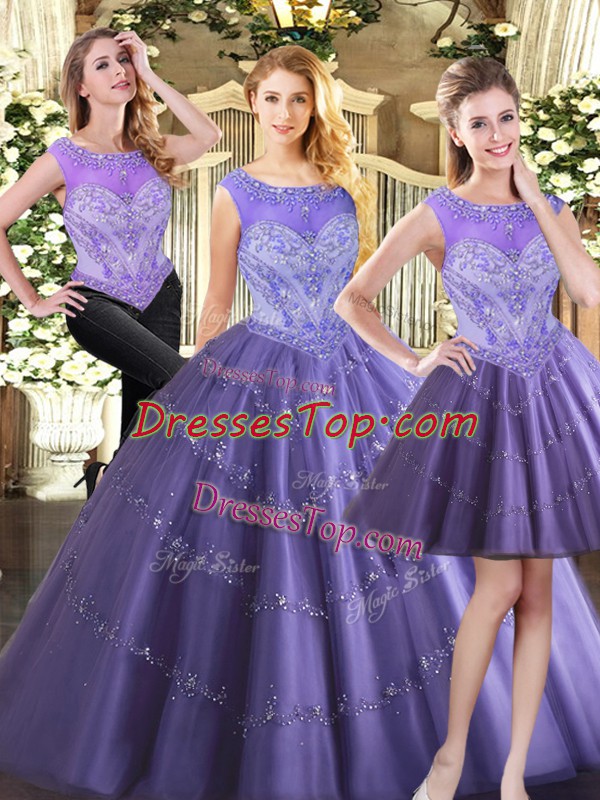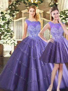Fabulous Scoop Sleeveless Zipper Sweet 16 Quinceanera Dress Lavender Tulle