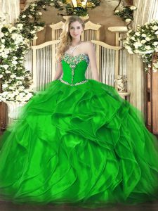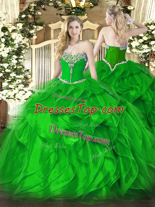 Fabulous Sleeveless Beading and Ruffles Lace Up Quince Ball Gowns