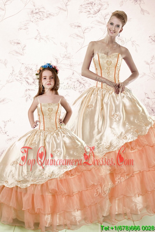 Fabulous Sleeveless Embroidery and Ruffled Layers Lace Up 15 Quinceanera Dress