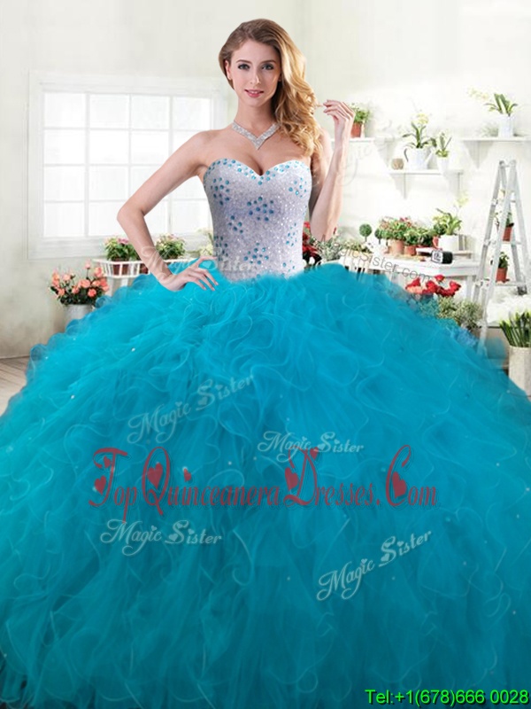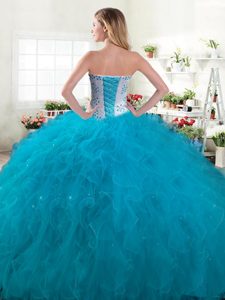 Fabulous Teal Sleeveless Beading and Ruffles Floor Length Sweet 16 Quinceanera Dress
