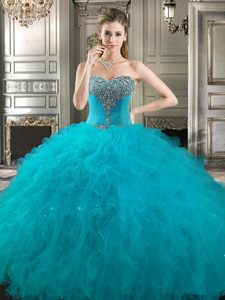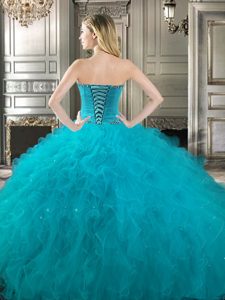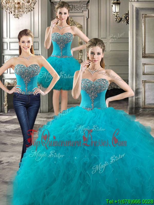 Fabulous Three Piece Tulle Sleeveless Floor Length Quince Ball Gowns and Ruffles