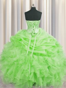 Fabulous Visible Boning Floor Length Vestidos de Quinceanera Organza Sleeveless Beading and Ruffles and Pick Ups
