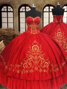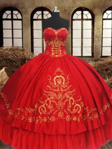 Fabulous Wine Red Ball Gowns Organza and Taffeta Sweetheart Sleeveless Beading and Embroidery Floor Length Lace Up Quinceanera Gowns