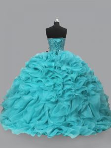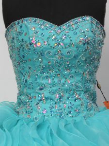 Fancy Aqua Blue Sweetheart Neckline Beading and Ruffles Quinceanera Gowns Sleeveless Lace Up