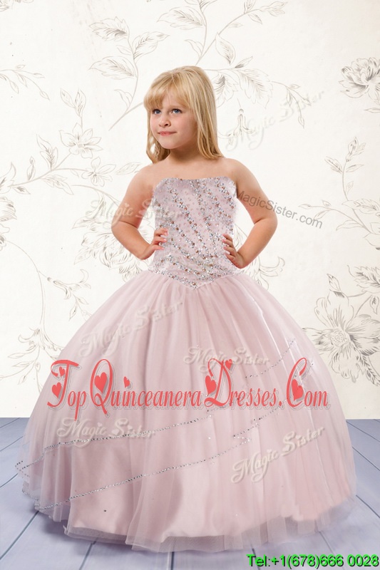 Fancy Ball Gowns Little Girls Pageant Dress Wholesale Baby Pink Strapless Tulle Sleeveless Floor Length Lace Up
