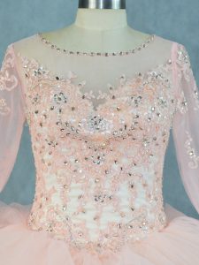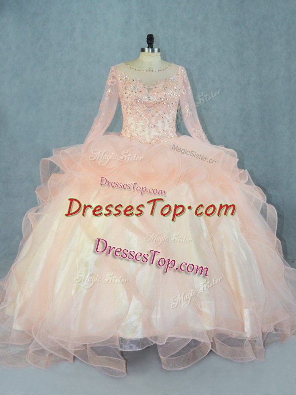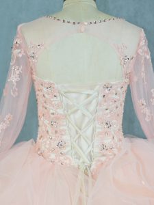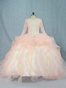 Fancy Ball Gowns Quinceanera Gowns Peach Scoop Tulle Long Sleeves Floor Length Lace Up
