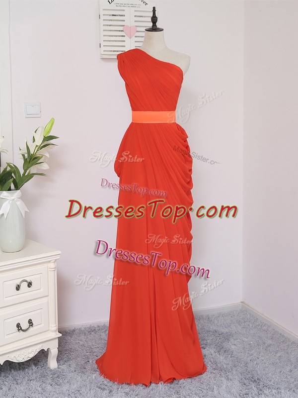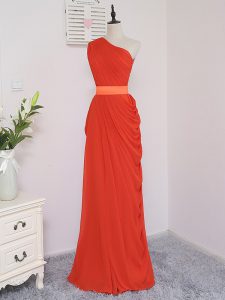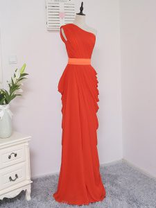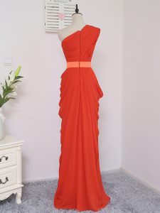 Fancy Coral Red Empire One Shoulder Sleeveless Chiffon Floor Length Zipper Pick Ups Quinceanera Dama Dress