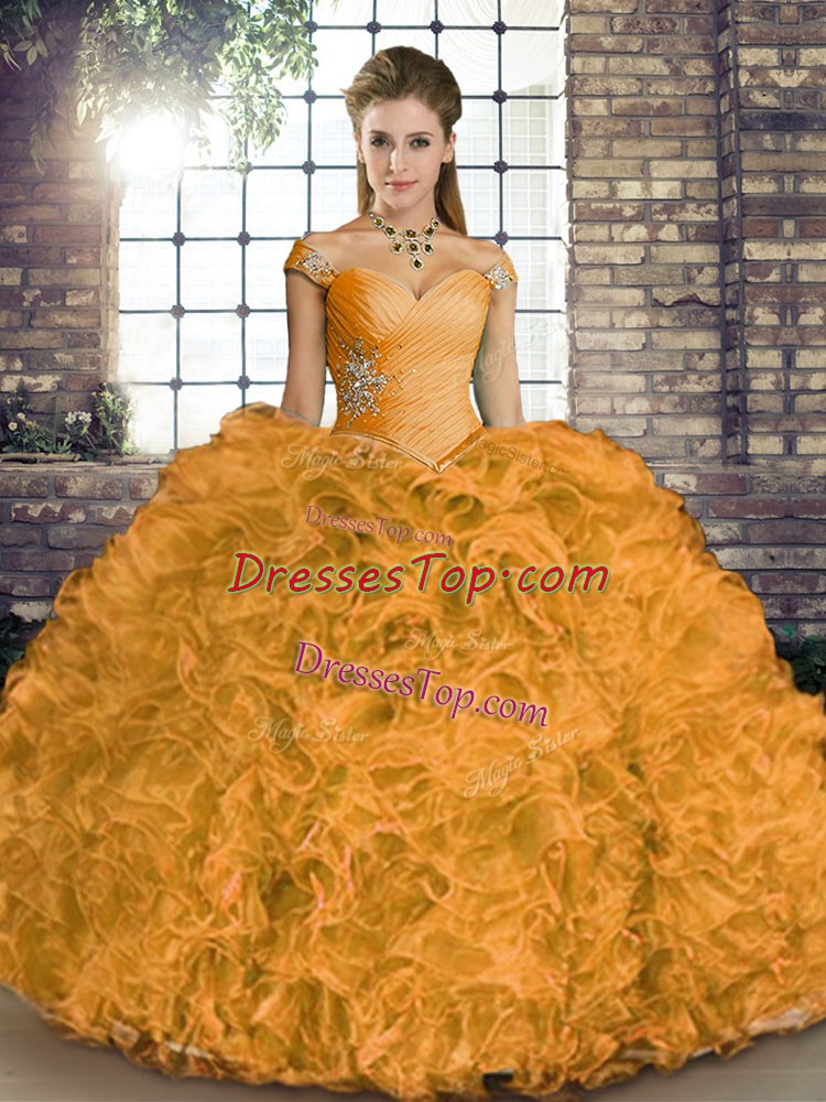 Fancy Orange Sweet 16 Dresses Military Ball and Sweet 16 and Quinceanera with Beading and Ruffles Off The Shoulder Sleeveless Lace Up