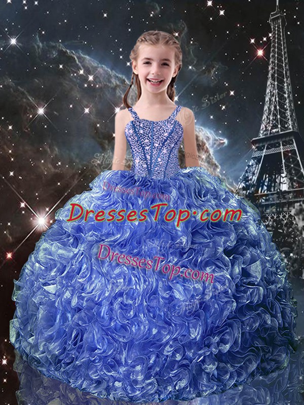 Fancy Organza Sleeveless Floor Length Pageant Dress for Womens and Beading and Ruffles