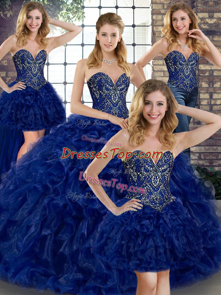 Fancy Organza Sleeveless Floor Length Quince Ball Gowns and Beading and Ruffles