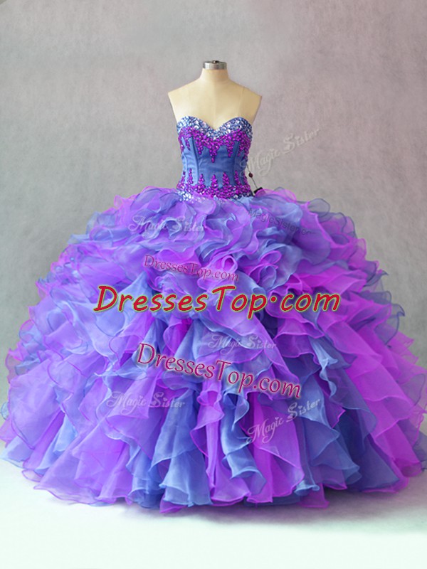 Fancy Organza Sleeveless Floor Length Vestidos de Quinceanera and Beading and Appliques and Ruffles