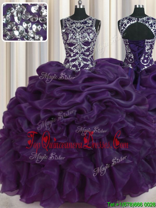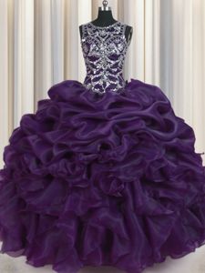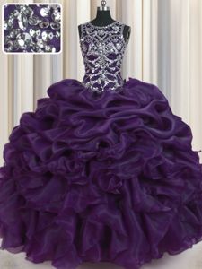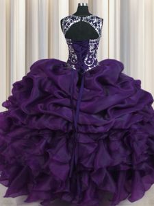 Fancy Pick Ups Ball Gowns Quinceanera Dress Dark Purple Scoop Organza Sleeveless Floor Length Lace Up