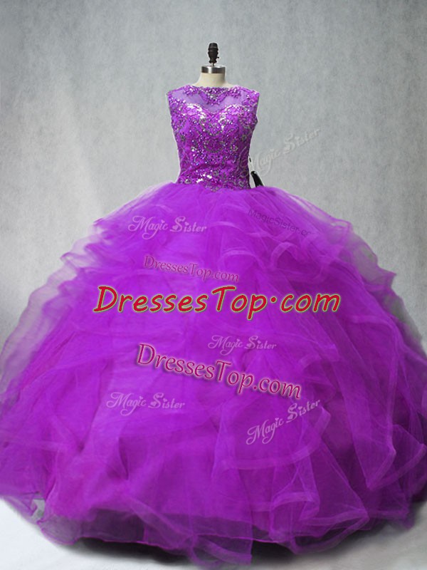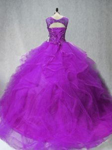 Fancy Purple Sleeveless Beading and Ruffles Lace Up 15th Birthday Dress