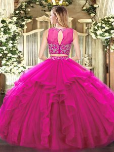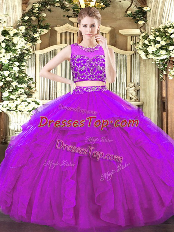 Fancy Purple Zipper Scoop Beading and Ruffles Sweet 16 Dresses Tulle Sleeveless