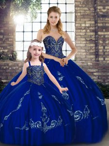 Fancy Royal Blue Sleeveless Beading and Embroidery Floor Length Vestidos de Quinceanera