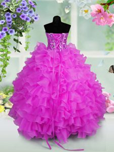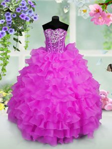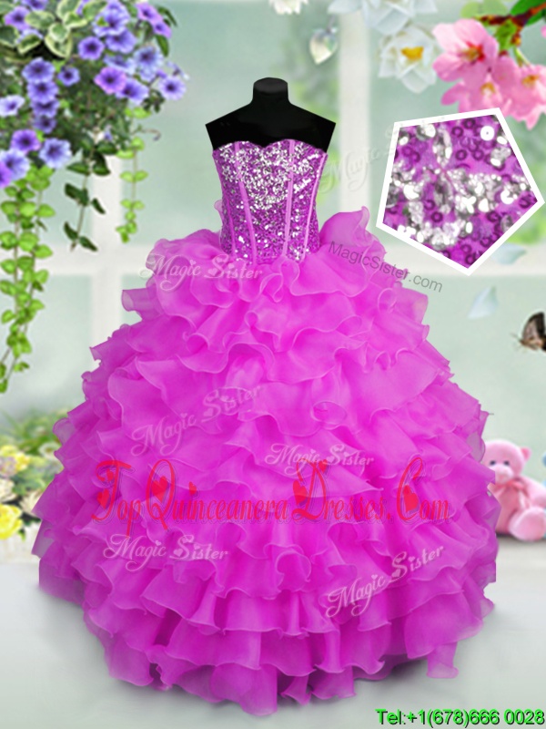 Fancy Ruffled Layers and Sequins Pageant Dress for Teens Lilac Lace Up Sleeveless Floor Length
