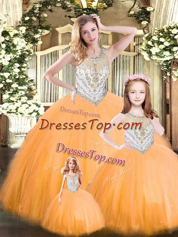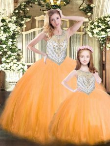 Fancy Scoop Sleeveless Tulle Quinceanera Dresses Beading Lace Up