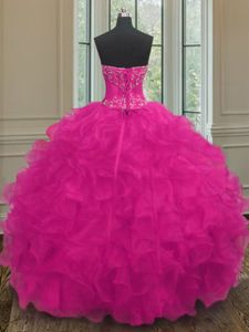 Fancy Sleeveless Beading and Embroidery Lace Up Quinceanera Dresses