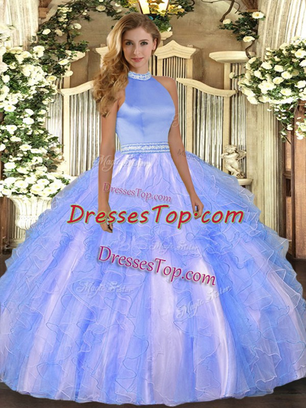 Fancy Sleeveless Beading and Ruffles Backless Quinceanera Gown