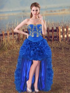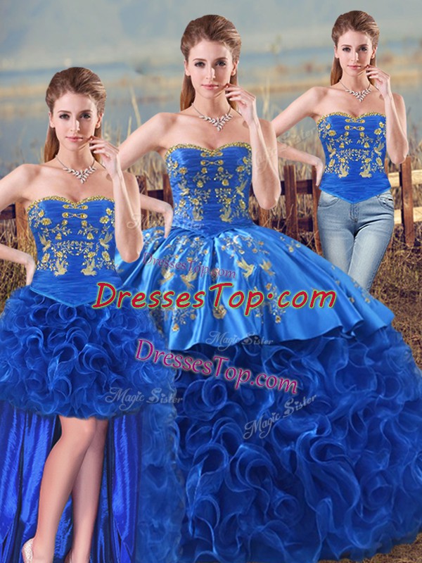 Fancy Sleeveless Floor Length Embroidery and Ruffles Lace Up Quinceanera Dress with Royal Blue