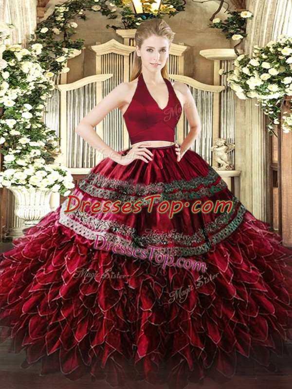 Fancy Sleeveless Zipper Floor Length Appliques and Ruffles Sweet 16 Dress