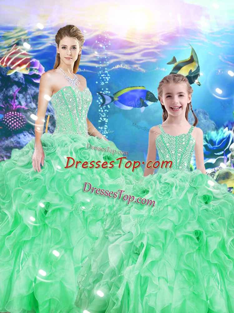Fantastic Apple Green Ball Gowns Beading and Ruffles Quinceanera Gown Lace Up Organza Sleeveless Floor Length