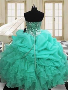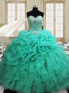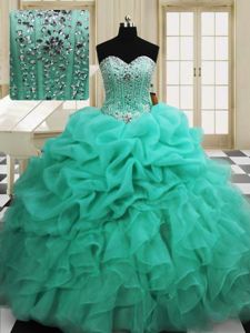 Fantastic Apple Green Lace Up Sweetheart Beading and Pick Ups 15 Quinceanera Dress Organza Sleeveless