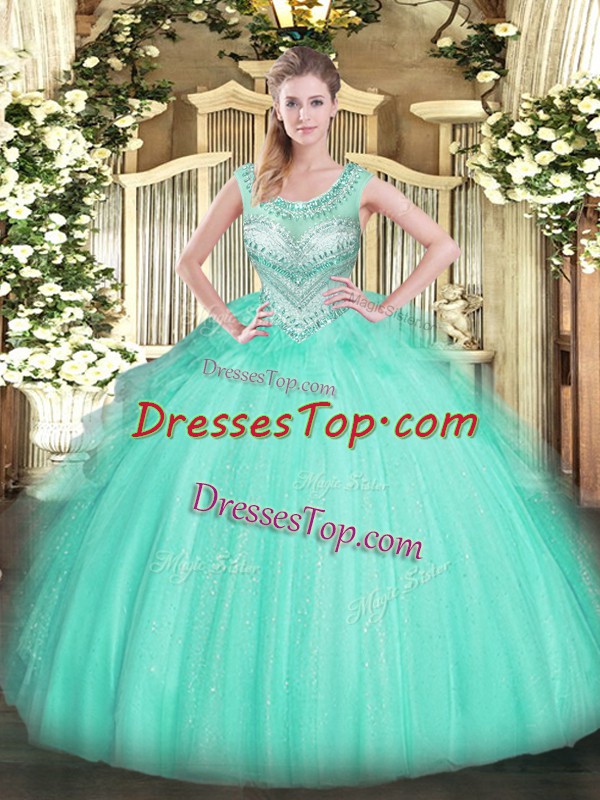 Fantastic Apple Green Sleeveless Tulle Lace Up Vestidos de Quinceanera for Sweet 16 and Quinceanera