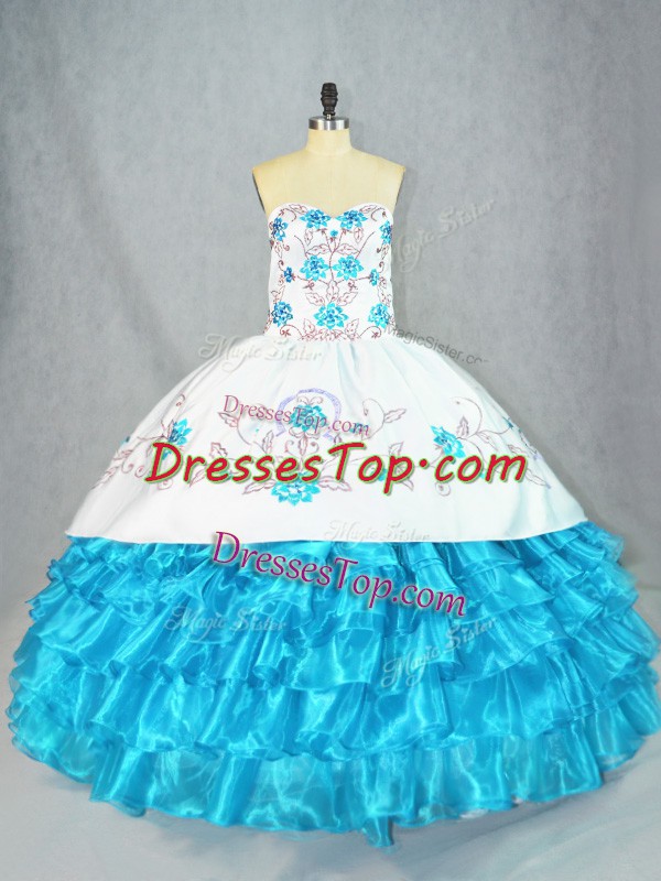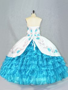 Fantastic Baby Blue Sweetheart Lace Up Embroidery and Ruffled Layers Quinceanera Dresses Sleeveless