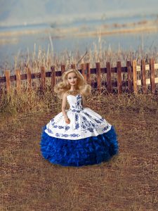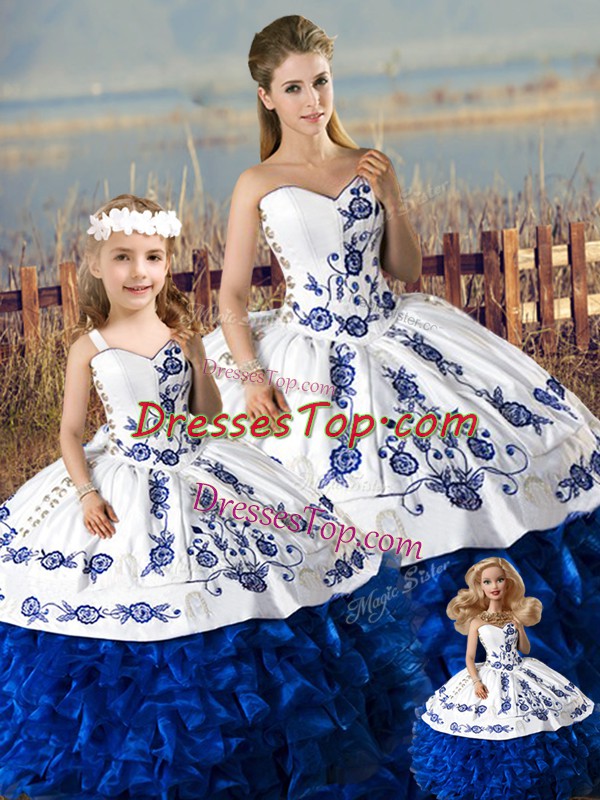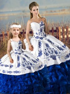 Fantastic Blue And White Sweetheart Neckline Embroidery and Ruffles 15 Quinceanera Dress Sleeveless Lace Up