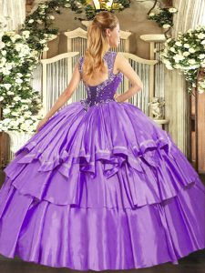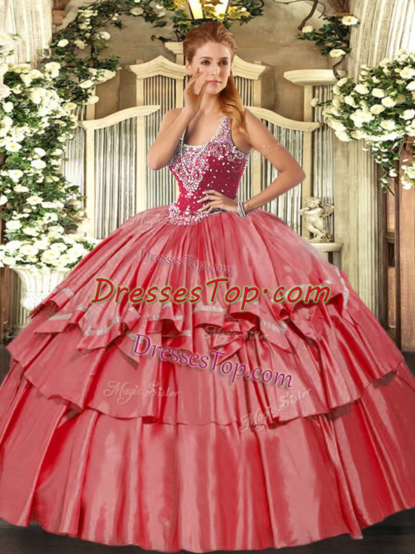 Fantastic Coral Red Lace Up Straps Beading and Ruffled Layers Quinceanera Gown Organza and Taffeta Sleeveless