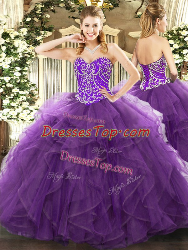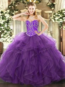 Fantastic Eggplant Purple Sleeveless Tulle Lace Up Quinceanera Gown for Military Ball and Sweet 16 and Quinceanera