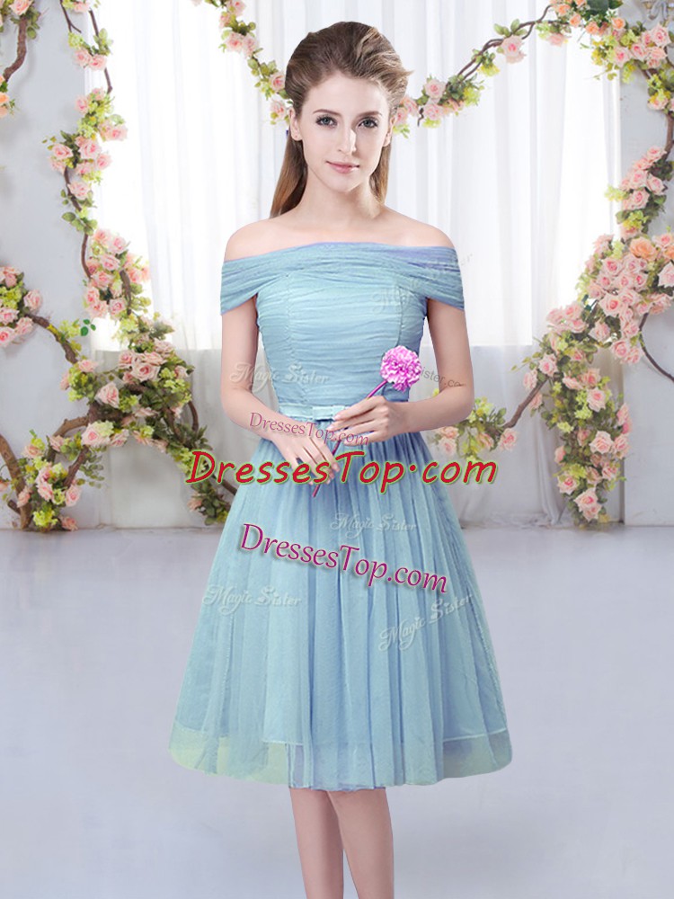 Fantastic Empire Damas Dress Blue Off The Shoulder Tulle Short Sleeves Knee Length Lace Up