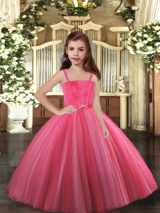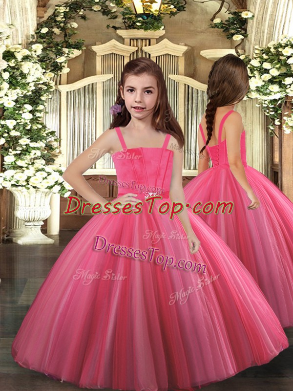 Fantastic Floor Length Lace Up Pageant Dress Toddler Hot Pink for Party and Sweet 16 and Wedding Party with Beading