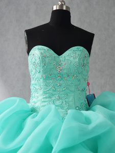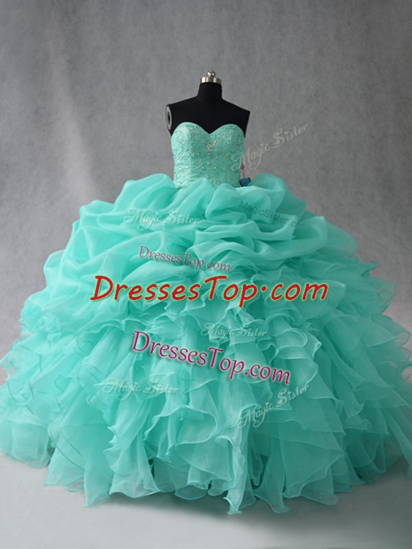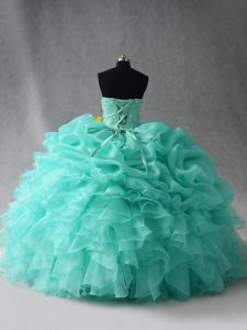 Fantastic Floor Length Lace Up Quinceanera Gown Aqua Blue for Sweet 16 and Quinceanera with Beading and Ruffles and Pick Ups