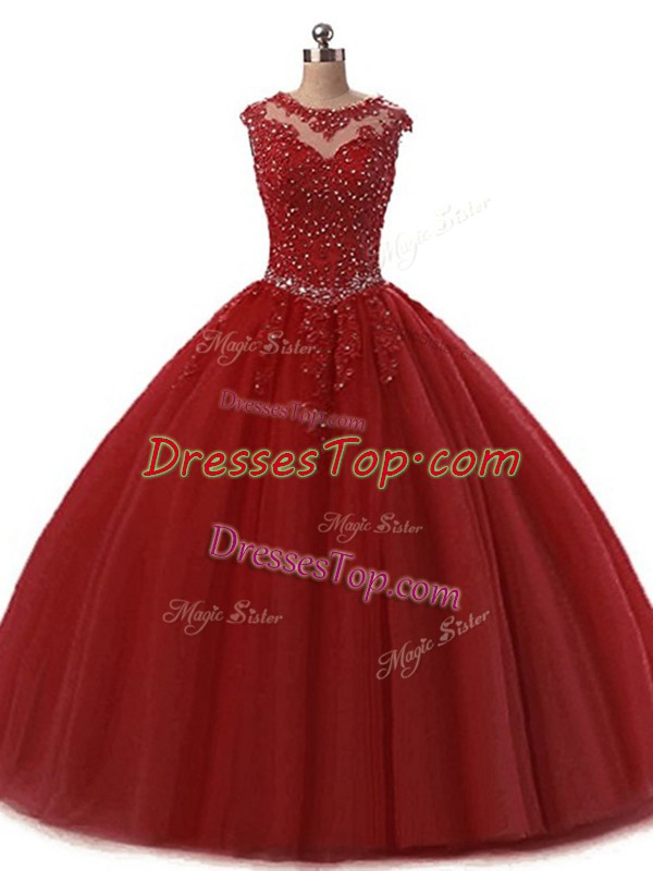 Fantastic Floor Length Lace Up Sweet 16 Dresses Burgundy for Military Ball and Sweet 16 and Quinceanera with Beading and Lace